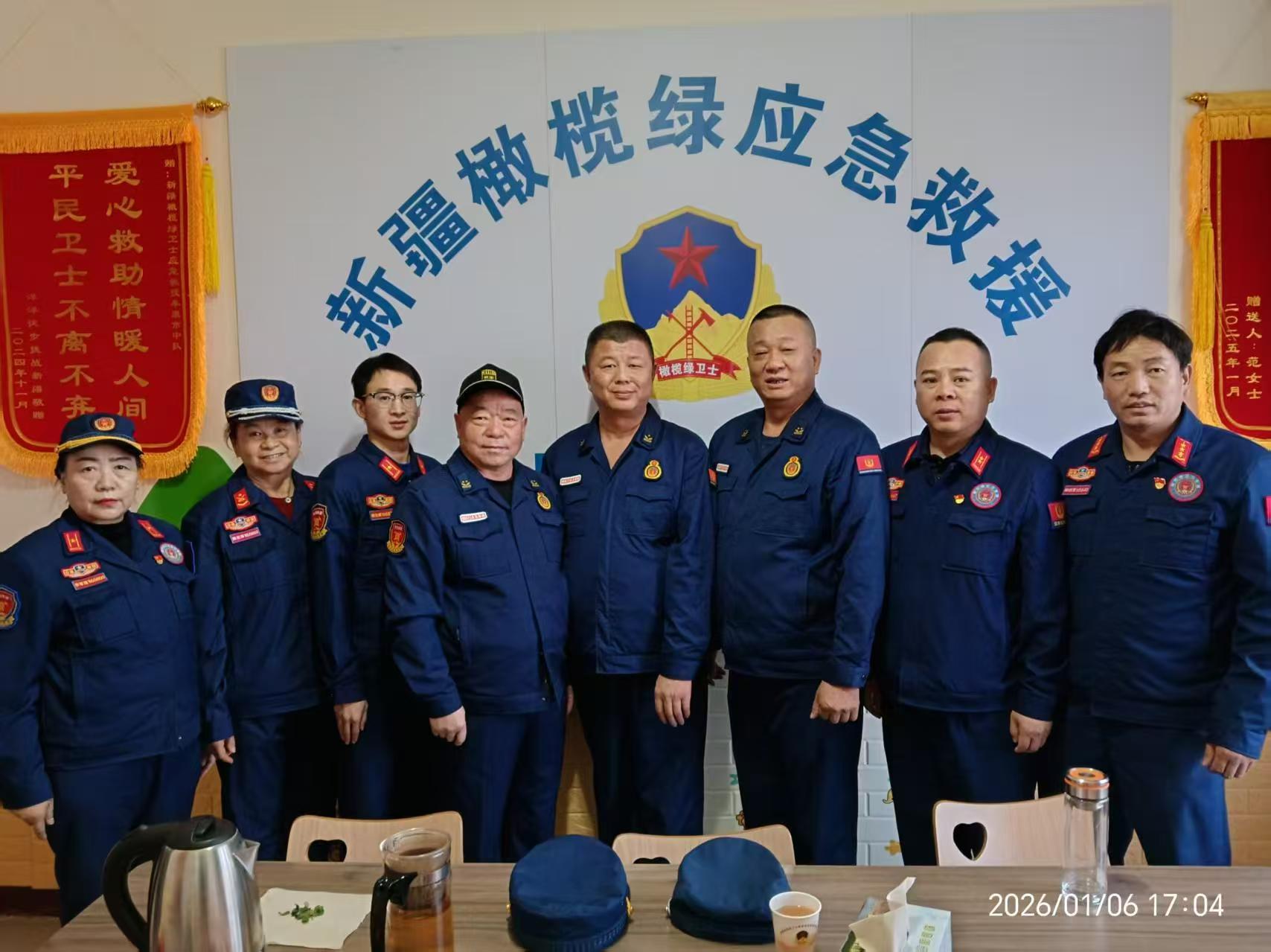 情谊如纽带,牵引着交流的脚步不断延伸。年会结束后,在乌苏市救援队队长司增强的全程陪同下,哈密市橄榄绿应急救援队一行应邀前往沙湾市,接受沙湾橄榄绿应急救援队加尔肯队长的盛情款待。在沙湾救援基地,双方实地参观了装备库房、训练场地,详细了解队伍日常管理、应急演练组织等情况,针对救援技能提升、志愿者培训等问题深入交换意见,每一句探讨都饱含着对救援事业的赤诚。