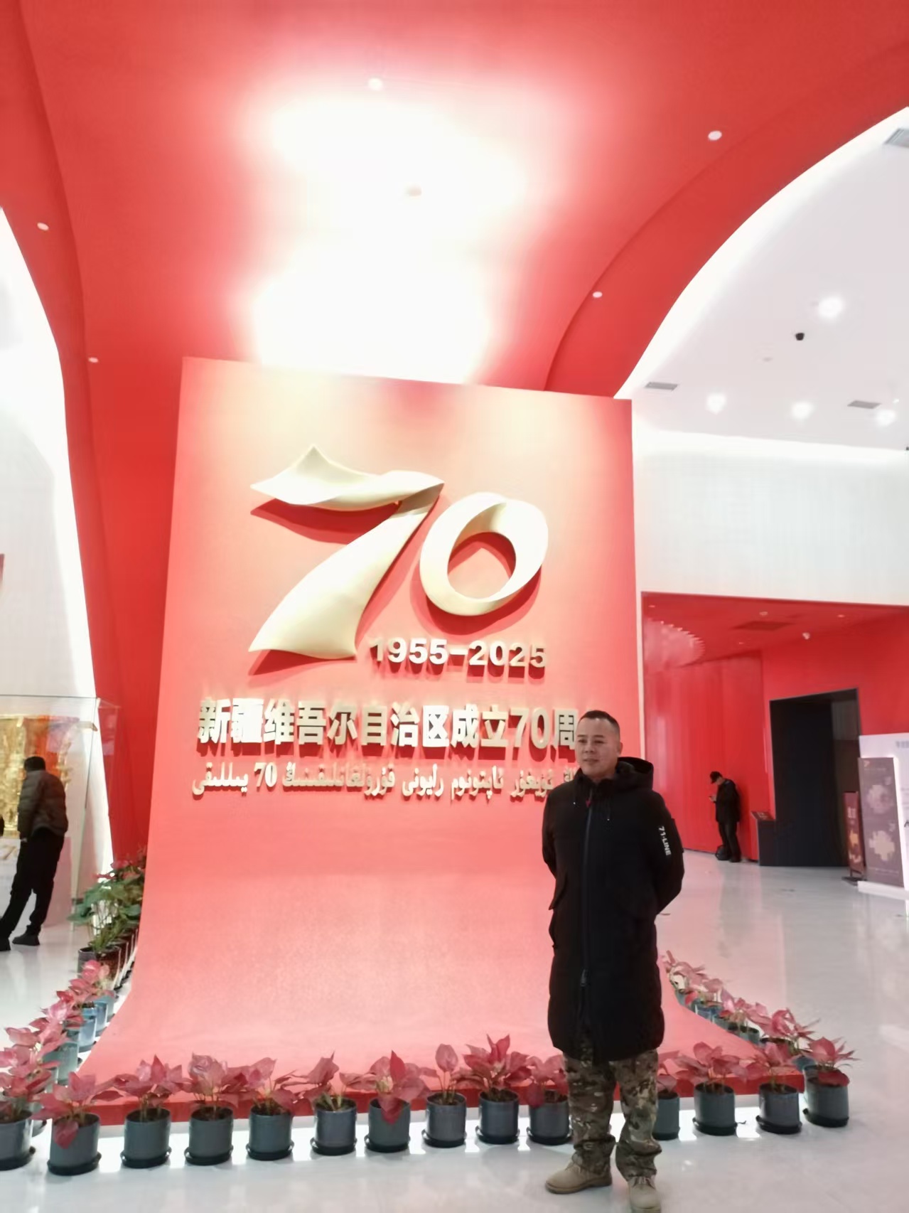 经过数小时的行程,动车稳稳抵达乌鲁木齐站。换乘车辆抵达乌鲁木齐文化中心展览馆时,这里早已人头攒动,前来参观的群众络绎不绝,浓厚的喜庆氛围与奋进气息扑面而来。此次新疆维吾尔自治区成立70周年主题成就展于2025年9月正式开展,是自治区成立70周年系列庆祝活动的重要组成部分,9月24日中共中央总书记习近平曾专程参观展览,并强调新疆70年的沧桑巨变是中华民族伟大复兴历史进程的一个生动缩影。举办此次展览,旨在全面回顾70年来在中国共产党坚强领导下、在全国各地大力支援下,新疆各族人民团结奋斗取得的辉煌成就,凝聚起建设社会主义现代化新疆的磅礴力量。步入展厅,时光的闸门徐徐打开,“万方乐奏换新天”“潮涌天山展宏图”“美丽新疆铸辉煌”三个部分的展览内容,通过1600余幅珍贵图片、1400余件实物模型以及150余个多媒体视频和场景还原,全景展现了在中国共产党坚强领导下,新疆各族人民团结一心、艰苦奋斗取得的辉煌成就,汇成了一条波澜壮阔的历史长河。