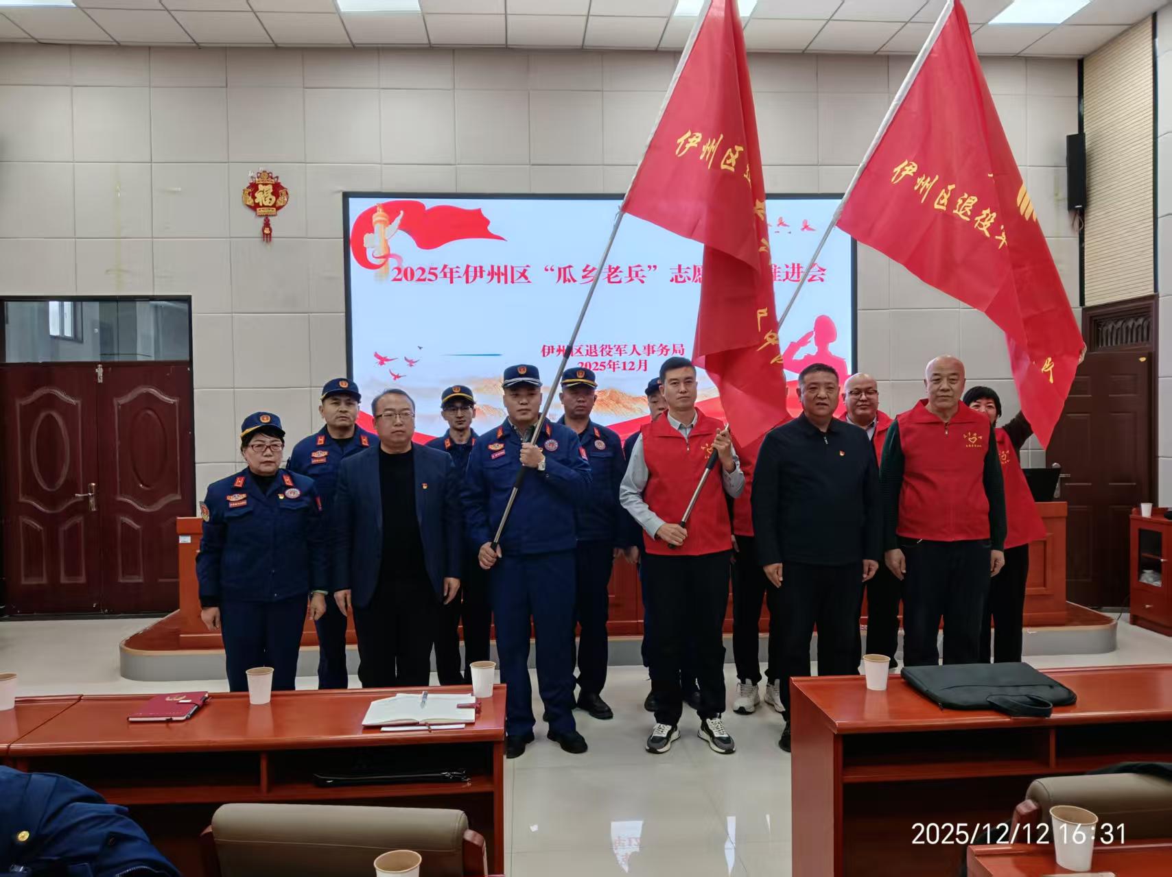 2025年12月12日下午,哈密市伊州区退役军人事务局召开“瓜乡老兵”志愿服务推进会,并举行伊州区退伍军人志愿服务队授旗仪式。